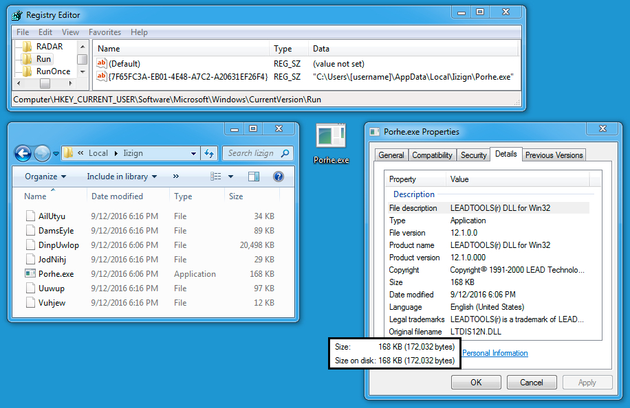 Shown above: Vawtrak artifacts and associated registry entry from the infected host.