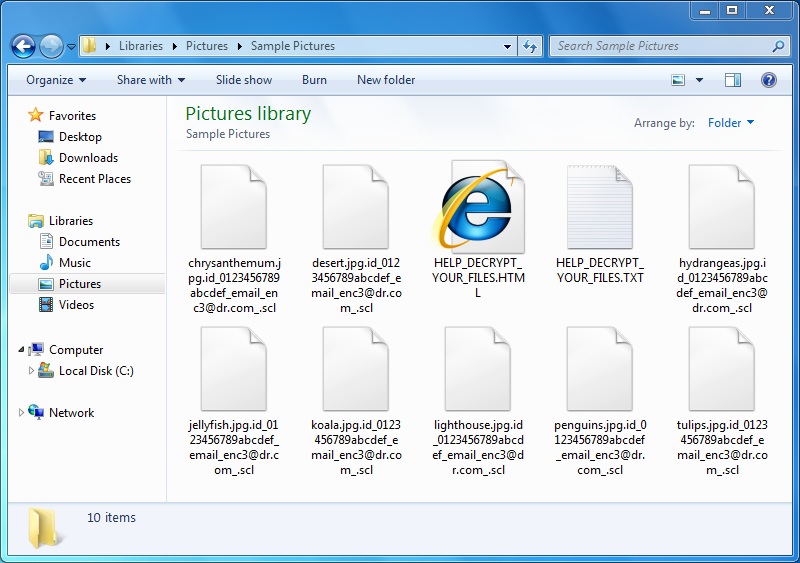 Email addresses from the decryption instructions are: enc3@usa.com and enc3@dr.com