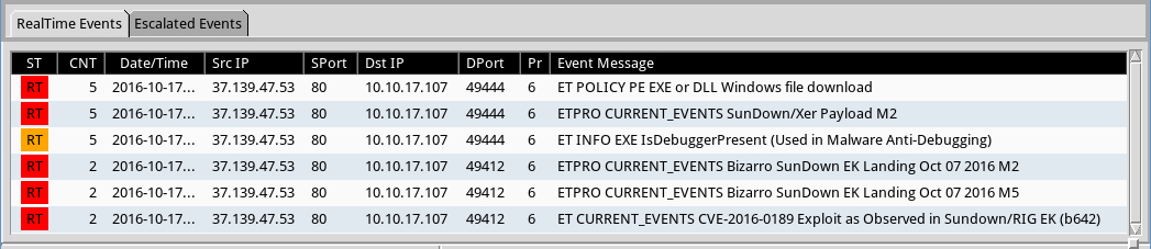 - Aside from the signature hits I got from the ETPRO ruleset indicating this is Sundown EK, I couldn't find anything else related this traffic.