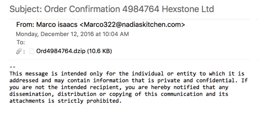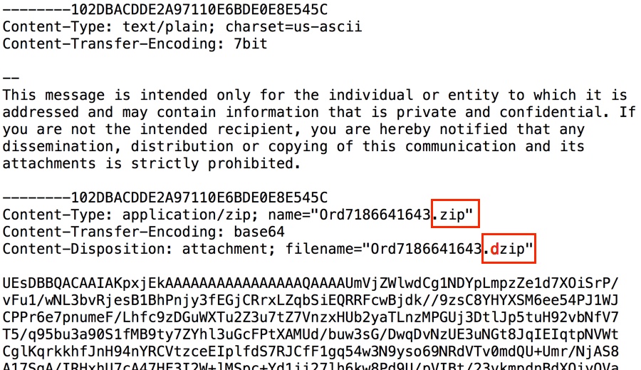 Shown above: There was an error in emails from this wave of emails, causing files extensions for .dzip attachments instead of .zip attachments.