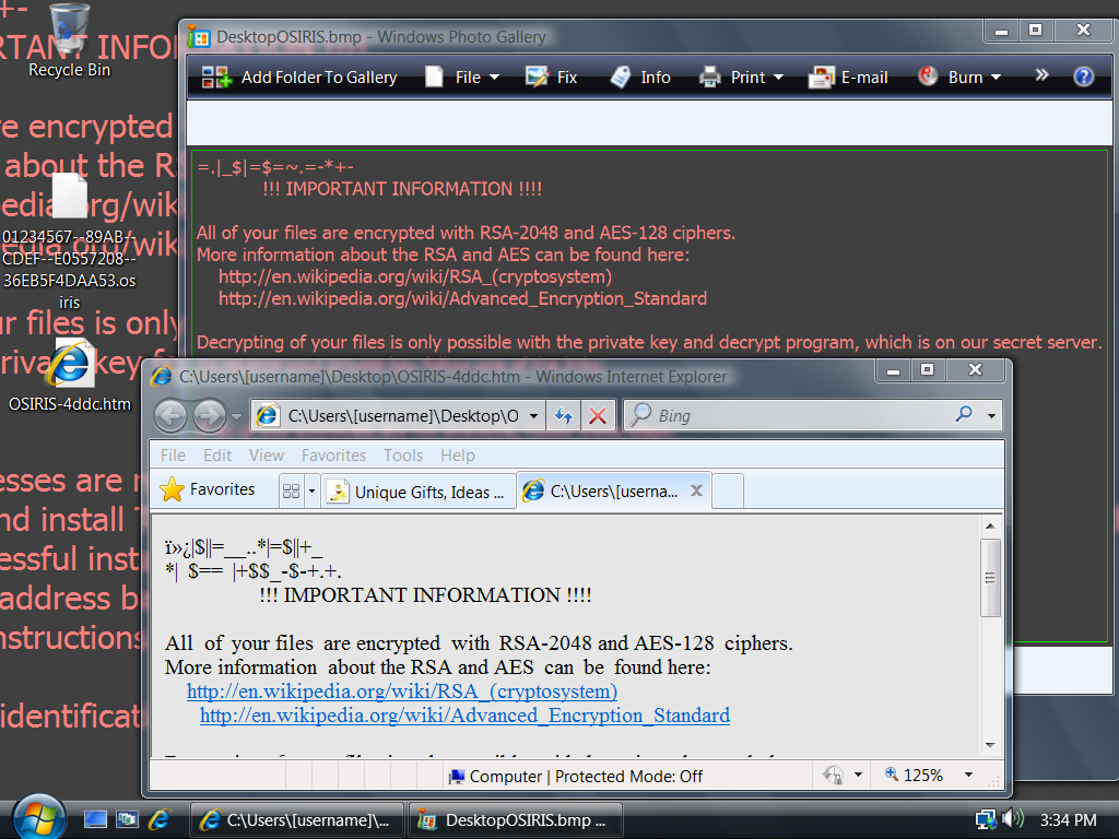 Shown above: Desktop of an infected Windows host after rebooting. This is the most recent variant of Locky (the "Osiris" variant).