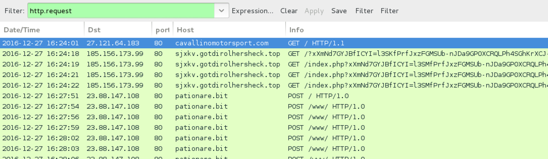 Shown above: Pcap of the infection traffic filtered in Wireshark.