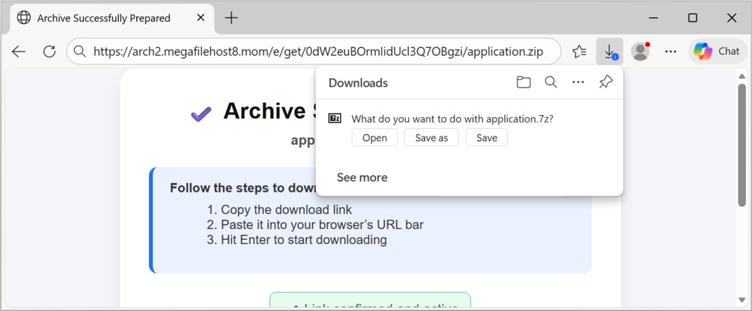 Shown above: Using the URL to download the initial file, a password-protected 7-zip archive.